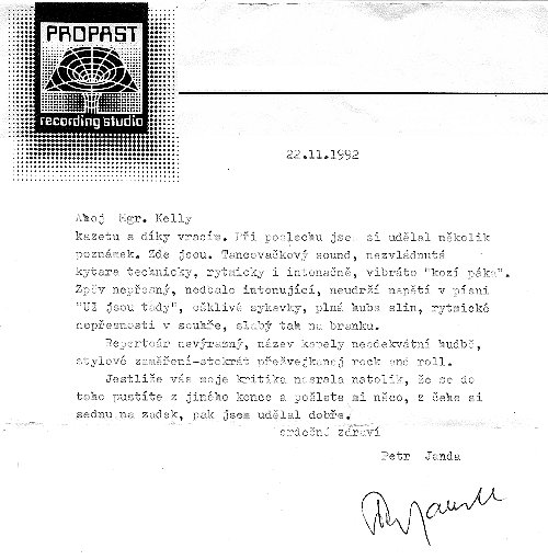 Za tuhle odpověď si u mě vysloužil Petr Janda přezdívku "Stokrát přežvejkanej rock'n'roll". Kamarád z Prahy dostal od Jandy odpověď prakticky stejnou. Na druhé straně musím kvitovat, že Janda alespoň odpověděl. Což se o žádné jiné nahrávací společnosti říci nedá.